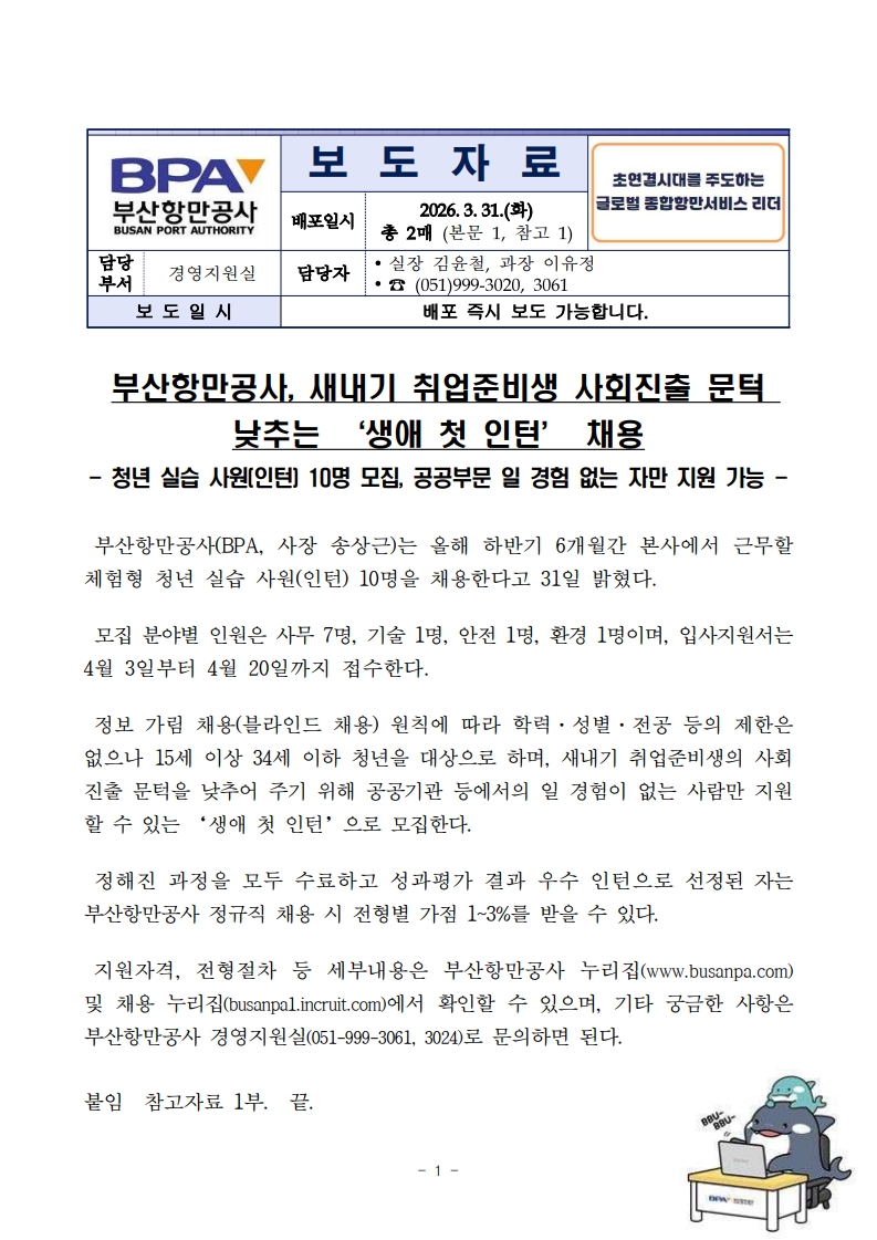 [260331_보도자료] 부산항만공사, 새내기 취업준비생 사회진출 문턱 낮추는 ‘생애 첫 인턴’ 채용.pdf