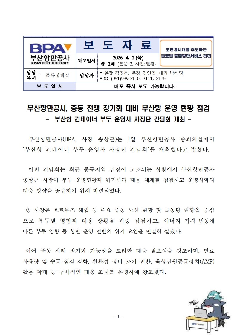 [260402 보도자료] 부산항만공사, 중동전쟁 장기화 대비 부산항 운영 현황 점검.pdf