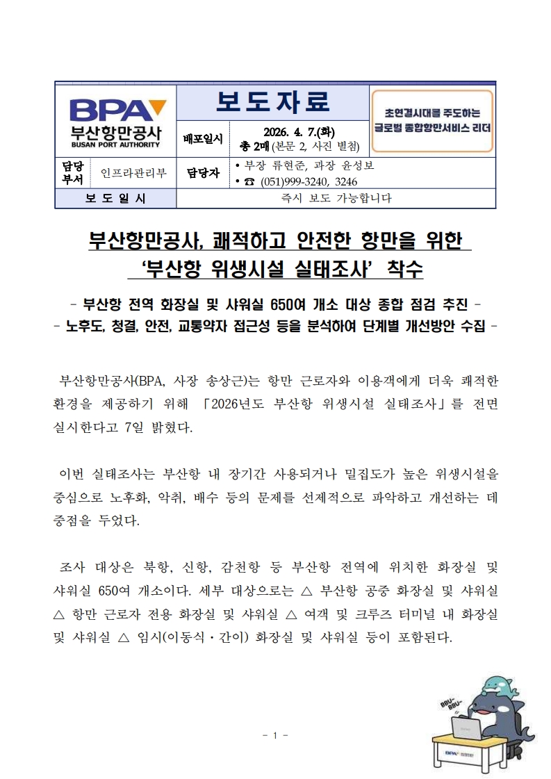 [260407 보도자료] 부산항만공사, 쾌적하고 안전한 항만을 위한 '부산항 위생시설 실태조사' 착수.pdf