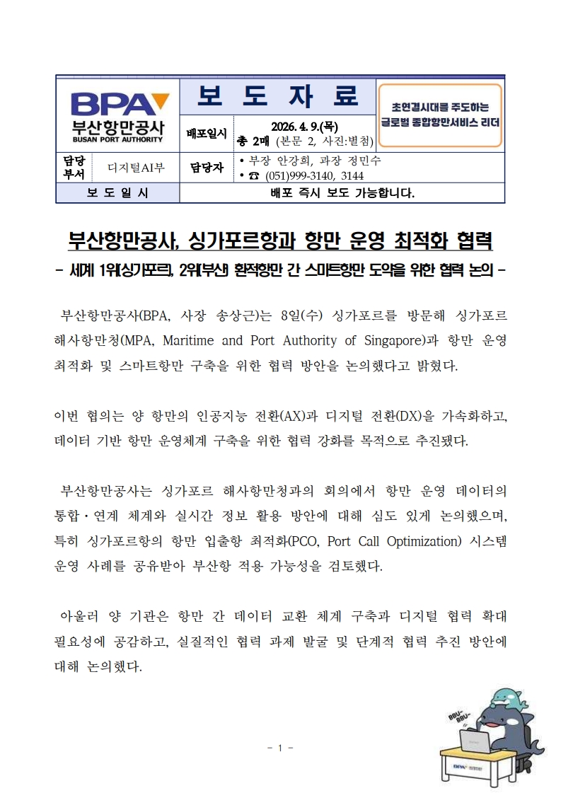 [260409 보도자료] 부산항만공사, 싱가포르항과 항만 운영 최적화 협력.pdf