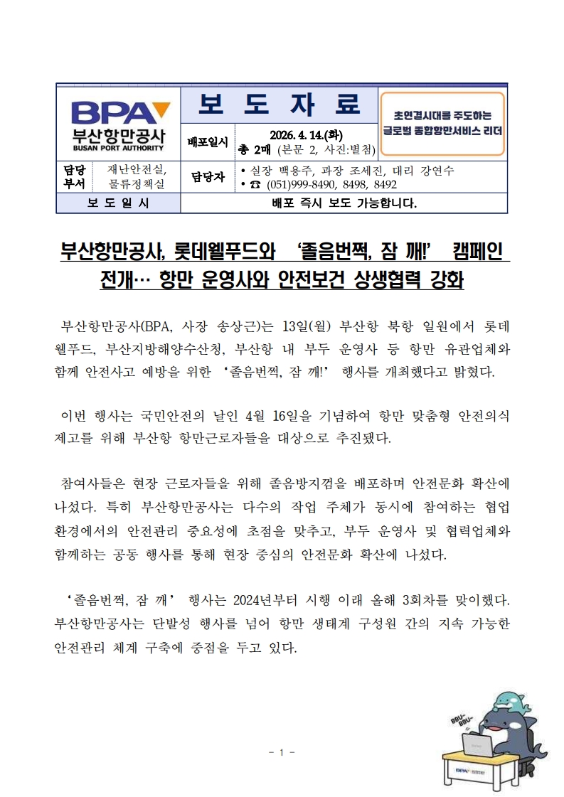 [260414_보도자료] 부산항만공사, '졸음번쩍, 잠 깨' 캠페인 전개. 항만 운영사와 안전보건 상생협력 강화.pdf