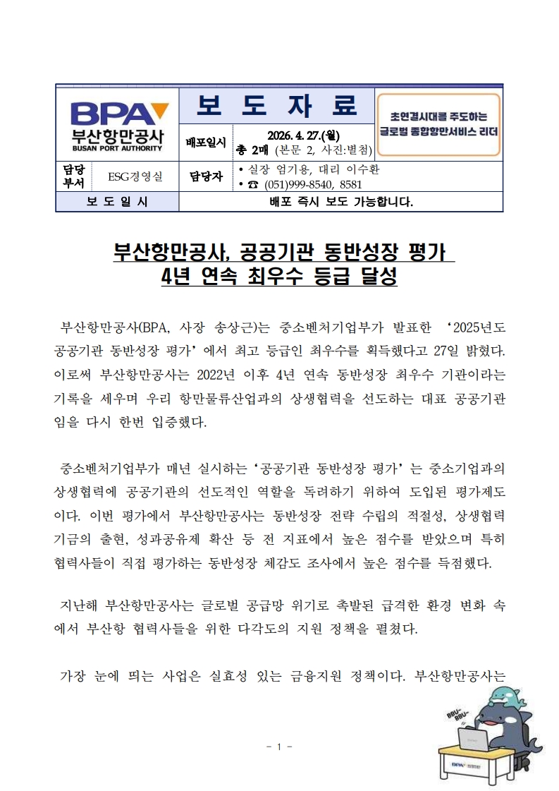 [260427_보도자료] 부산항만공사, 공공기관 동반성장평가 4년 연속 최우수 등급 달성.pdf
